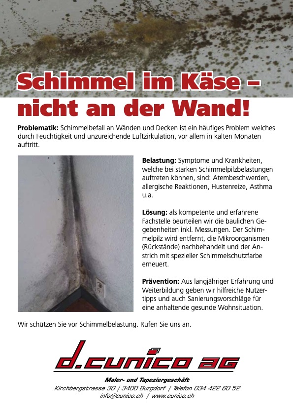 Egal ob Brandschaden, Wasserschaden oder Schimmel: Wir verfügen über jahrelange Erfahrung in der Sanierung und beraten Sie professionell – im Innen- wie auch Aussenbereich.